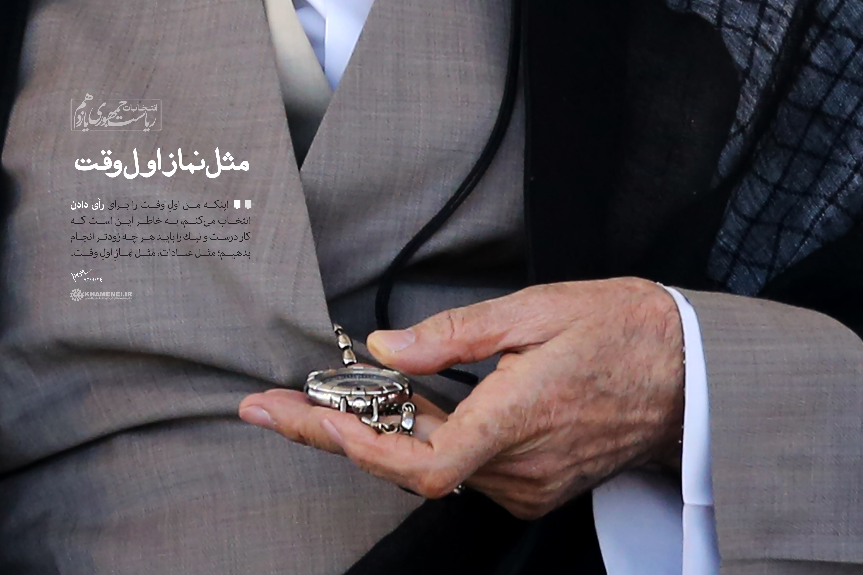 امام خامنه ای :((اکنون که حماسهی سیاسی و نقطه اوج آن در جمعهی بیست و چهارم خرداد با پیروزی ملت ایران و نظام جمهوری اسلامی به سرانجام رسیده است، هیجان و التهاب روزها و هفتههای رقابت، باید جای خود را به همکاری و رفاقت داده و طرفداران نامزدهای رقیب در آزمون بردباری و متانت و دانایی نیز جایگاه شایستهی خود را به دست آورند. هیچ احساسی، چه شادمانی و چه ناشادمانی، نباید کسی را به رفتار و گفتاری دور از شأنِ خردمندی و فرزانگی وادار کند. نگذارید بدخواهان، احساسات مردم را ابزار خواستههای پلید خویش کنند. وحدت ملی و رفق و مدارا پشتوانهی امنیت کشور و خنثیکنندهی ترفندهای دشمنان است))